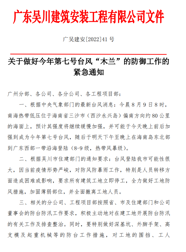 關(guān)于做好今年第七號臺風“木蘭”的防御工作的緊急通知