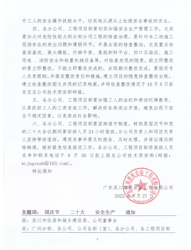 關(guān)于切實(shí)做好國慶節(jié)及黨的二十大期間安全生產(chǎn)管理工作的通知